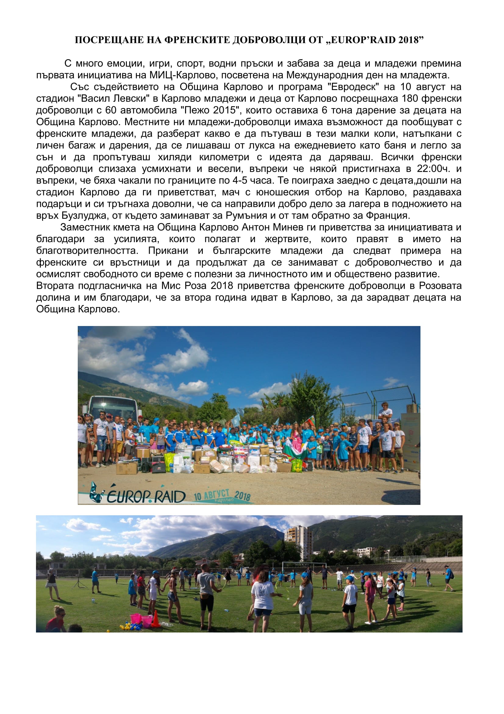 ПОСРЕЩАНЕ НА ФРEНСКИТЕ ДОБРОВОЛЦИ ОТ „ЕUROP’RAID 2018”
