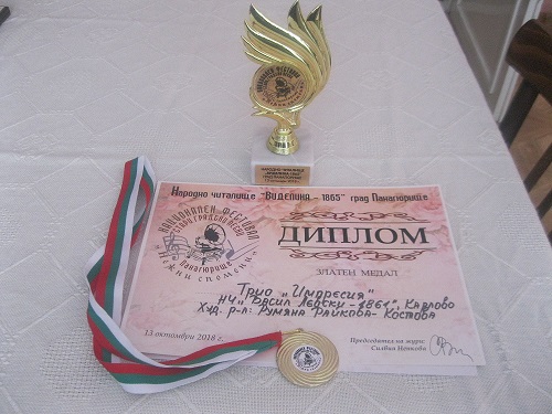 На 13 октомври на сцената на Народно читалище „Виделина – 1865г.” се състезаваха над 200 участници от цялата страна. Трио „Импресия” при Народно читалище „Васил Левски-1861г.” Карлово отново  защити своя талант и се върна с Диплом и златен медал.