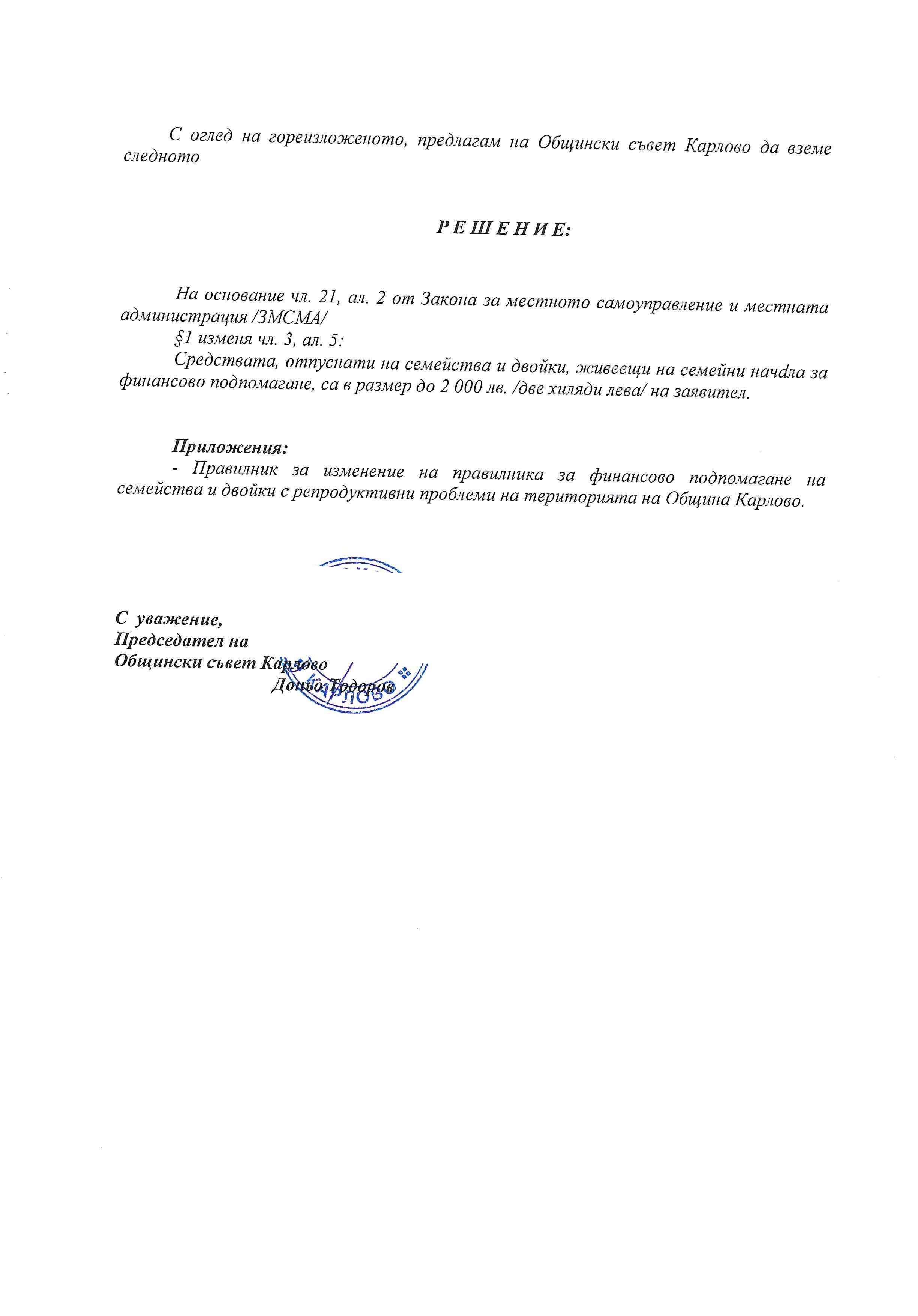 Приемане на Правилник за изменение на правилника за финансово подпомагане на семейства и двойки с репродуктивни проблеми