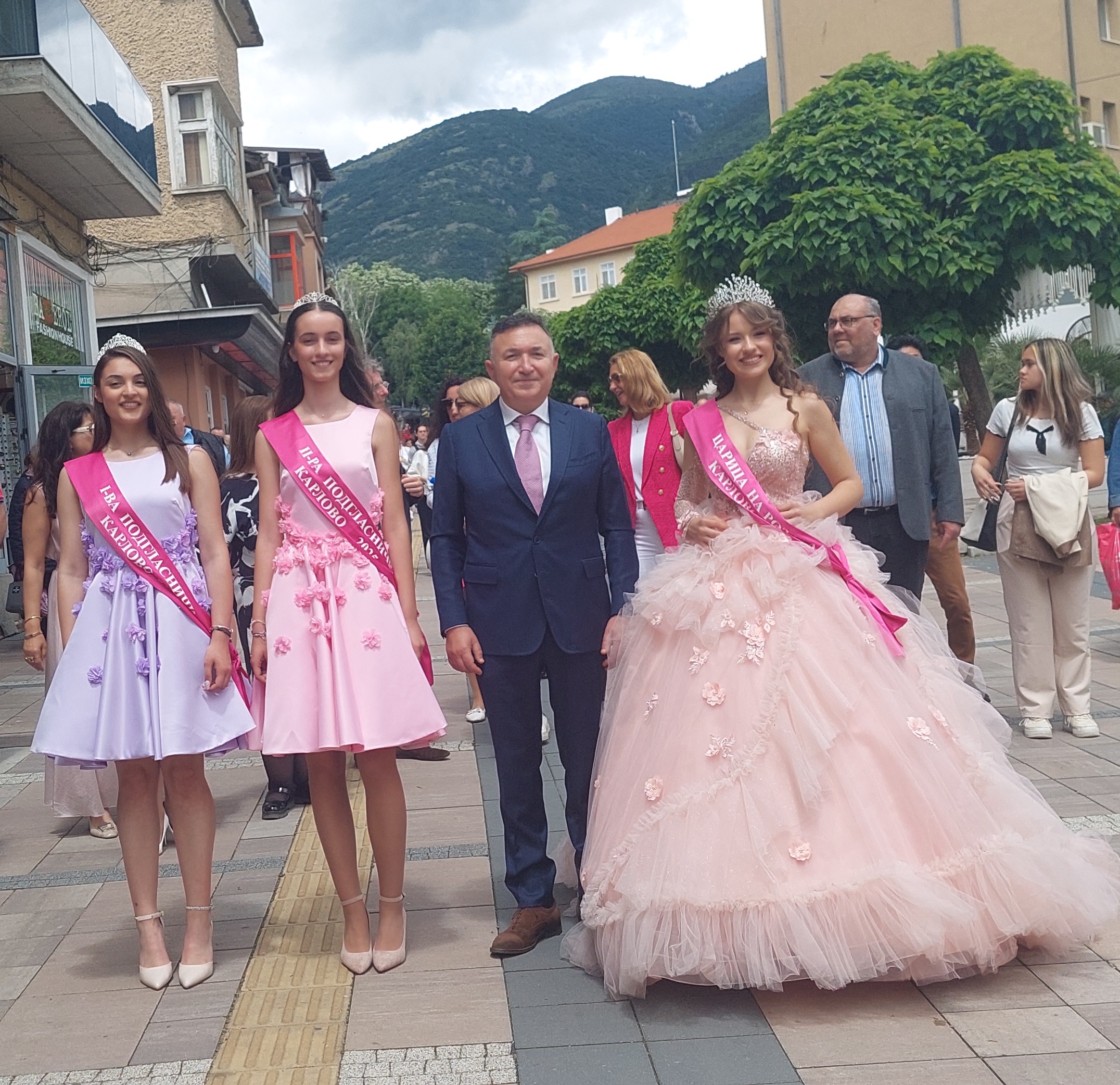 С хитовия модел „Хюндай Санта Фе“, Никол Гаджева - Царица на розата 2025 и нейните подгласнички Симона Цачева и Стела Трифонова се придвижиха от Клисура до централния площад „20-ти юли“ в Карлово. Там, под звуците на Военния духов оркестър на 61-ва Стрямска механизирана бригада, дефилираха участниците в празничното шествие, водено от Царицата, подгласничките й и малки асистентки – розички.