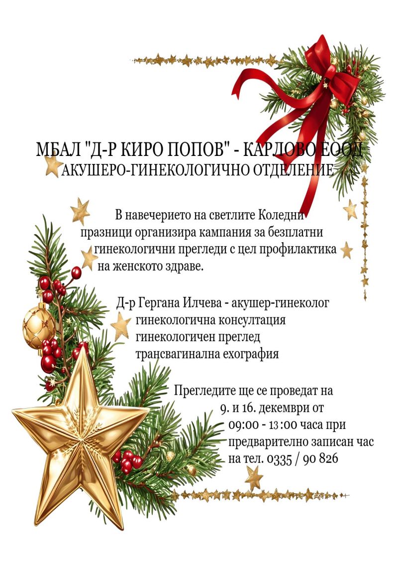 МБАЛ "Д-р Киро Попов" - Карлово организира безплатни гинекологични прегледи