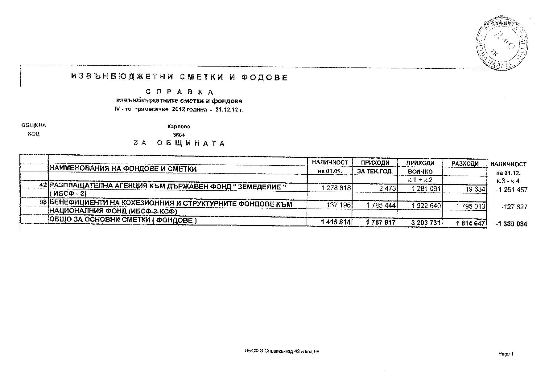 Обяснителна записка към годишния финансов отчет на Община Карлово за 2012 г.