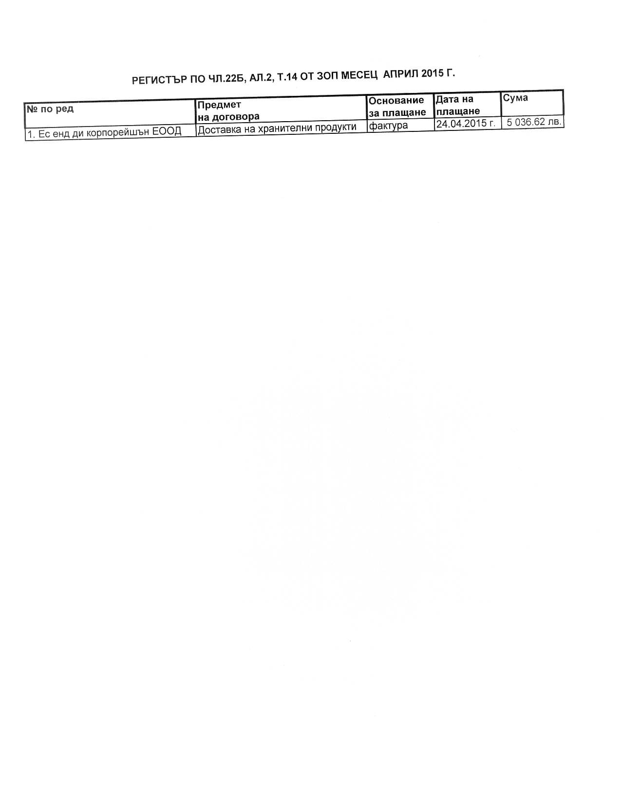 РЕГИСТЪР ПО ЧЛ.22Б,АЛ.2, Т.14 ОТ ЗОП М.04.2015 Г. ЦДГ ГИНА КУНЧЕВА