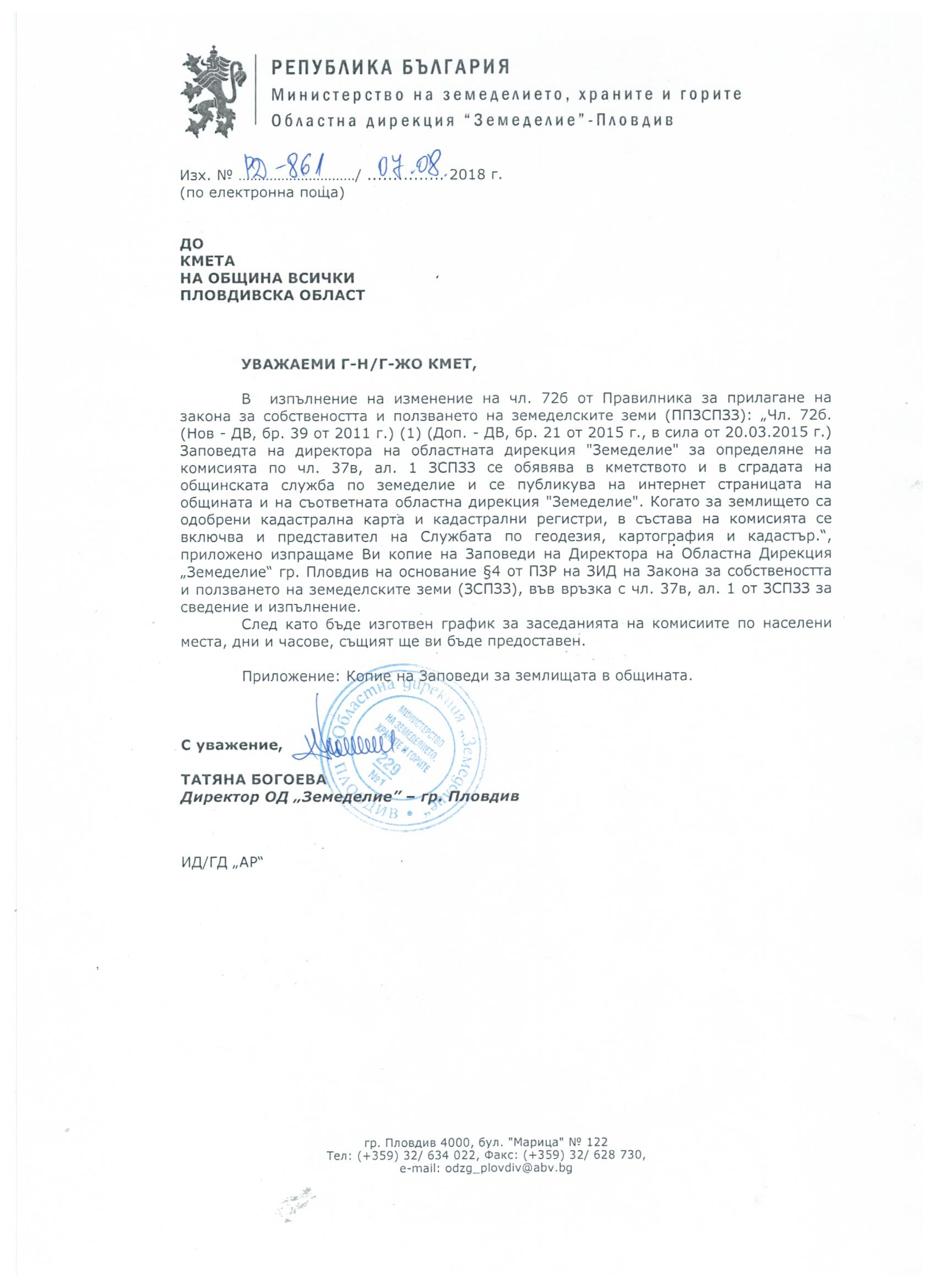 Заповеди по чл. 37в, ал. 1 от ЗСПЗЗ за стоп. 2018/2019