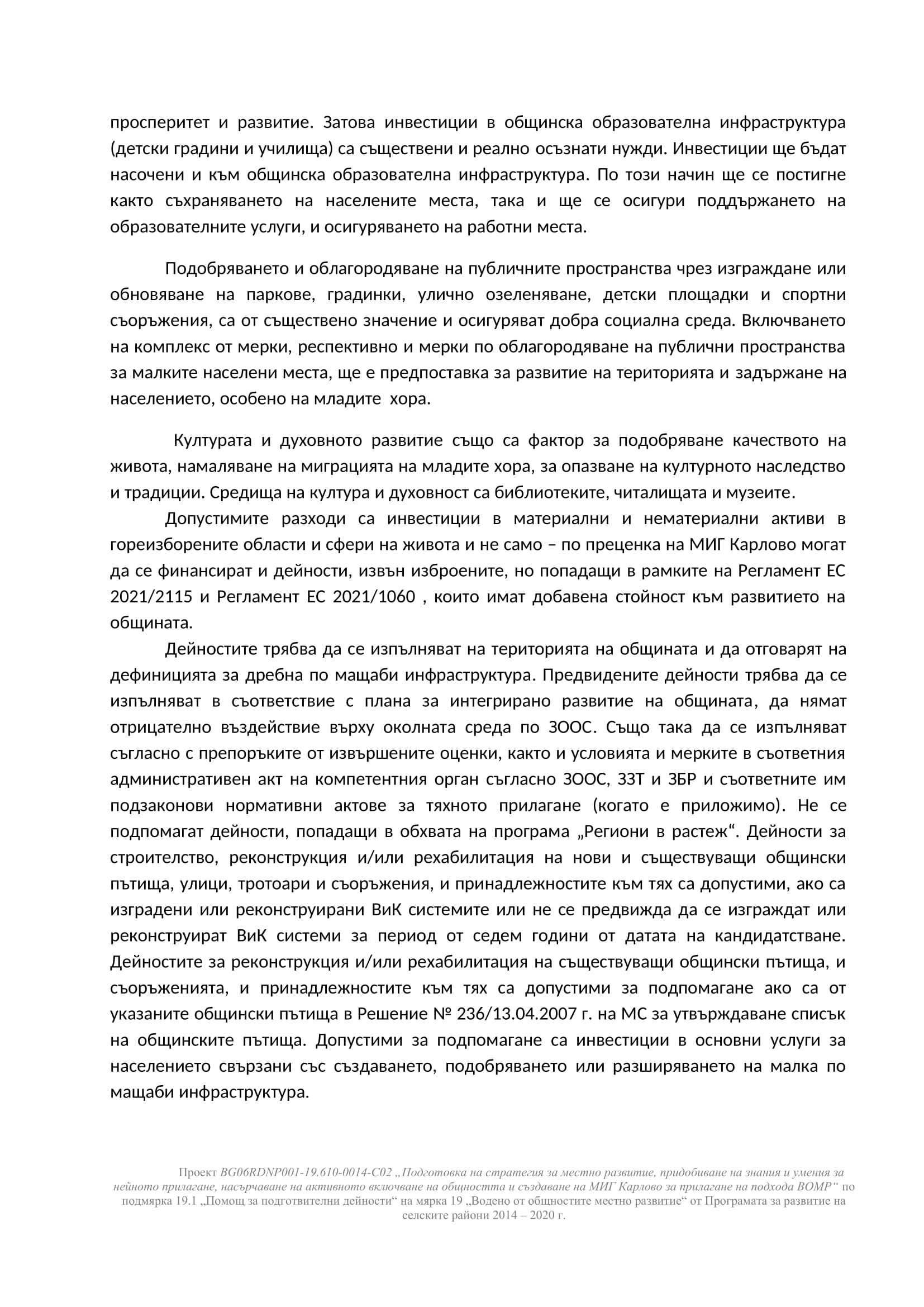 Стратегията за водено от общностите местно развитие (СВОМР) се разработва по проект BG06RDNP001-19.610-0014-C02 „Подготовка на стратегия за местно развитие, придобиване на знания и умения за нейното прилагане, насърчаване на активното включване на общността и създаване на МИГ Карлово за прилагане на подхода ВОМР“ по подмярка 19.1 „Помощ за подготвителни дейности“ на мярка 19 „Водено от общностите местно развитие“ от Програмата за развитие на селските райони 2014 – 2020 г., ще представи в няколко последователни публикации възможните интервенции, които биха могли да намерят място в Стратегията за водено от общностите местно развитие (СВОМР) за периода 2023 – 2027 г.