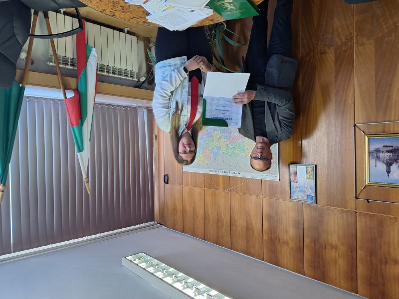 Алпай Даулджиев и Симона Чернева получиха сертификати за участие в инициативата „Мениджър за един ден“, подписани от кмета на Община Карлово д-р Емил Кабаиванов и изпълнителния директор на Джуниър Ачийвмънт България Милена Стойчева.