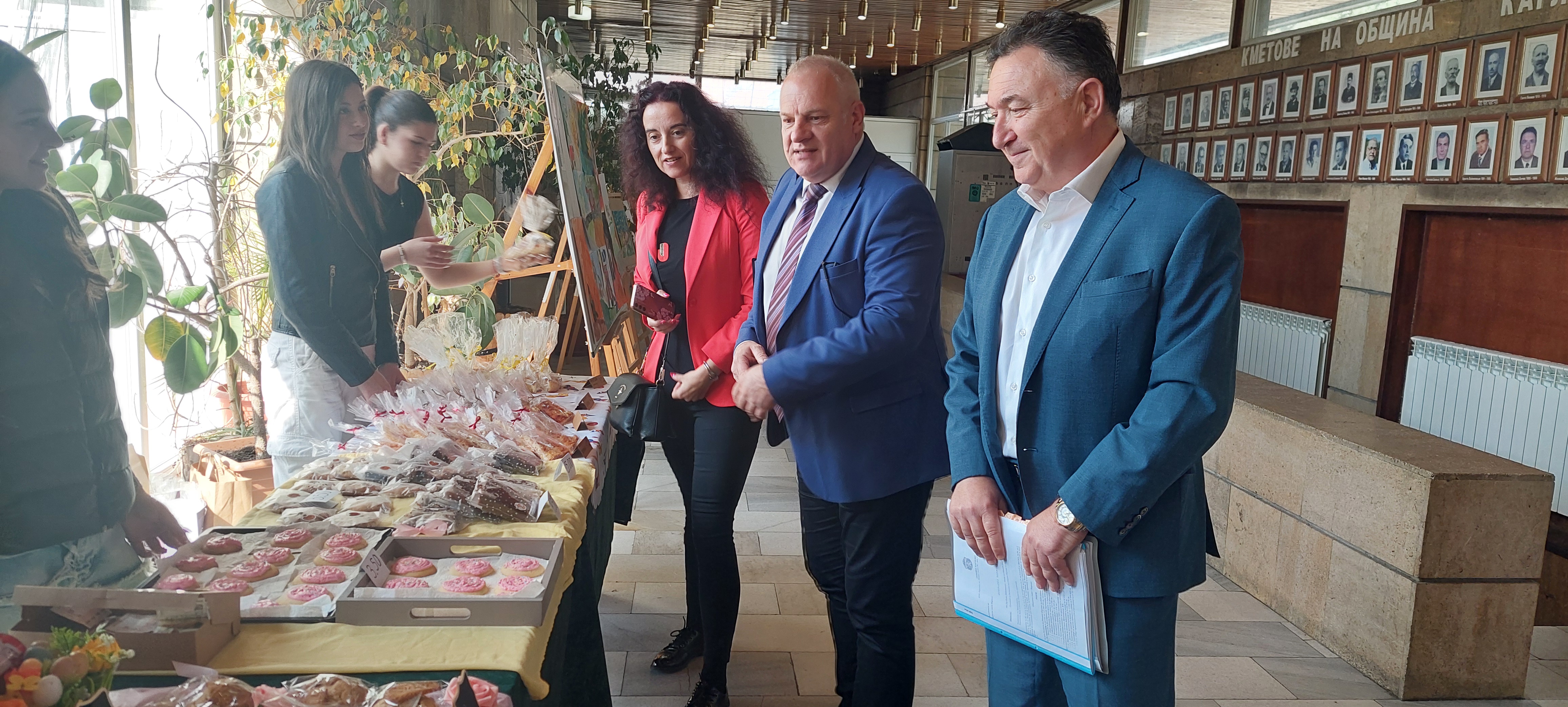 Преди редовната сесия кметът, неговите заместници, общински съветници и граждани закупиха ръчно изработени сладкарски и тестени изделия и сувенири – дело на седем ученически отбора по програма „Млади предприемачи в действие“. Тя се реализира от карловския Младежки информационен център с ръководител Цветина Захарлиева.