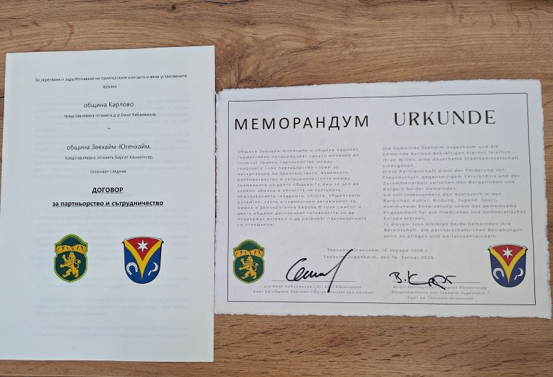 Нова заседателна зала в административния център на германския град Зеехайм-Югенхайм вече носи името „Карлово“. Тя бе официално открита от кмета на община Карлово д-р Емил Кабаиванов и кмета на Зеехайм-Югенхайм Биргит Каннегисер. Инициативата е резултат от дългогодишното успешно сътрудничество между двете общини и е израз на уважение и признателност към ръководството на община Карлово.